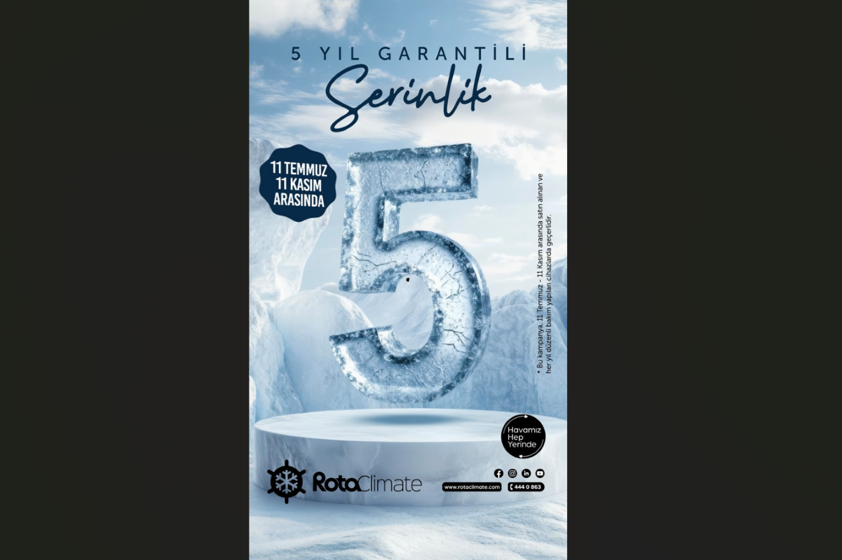 Yaz sezonunda daha fazla tüketiciyi Rota Klima konforu ile buluşturmak isteyen Rota Klima, split klimalarında 5 YIL GARANTİ uygulamasını hayata geçirdi. Rota Reindeer, Seal ve Macaroni olarak adlandırılan üç farklı split klima modeli için 5 YIL GARANTİ uygulaması 11 Temmuz- 11 Kasım 2025 tarihlerinde arasında geçerli olacaktır.