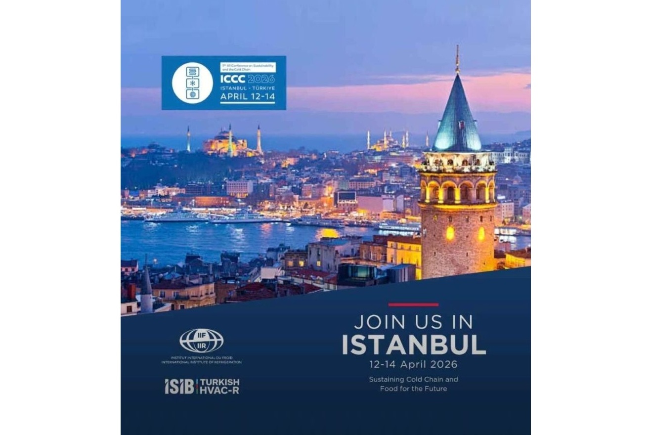 International Institute of Refrigeration (IIR) tarafından İklimlendirme Sanayi İhracatçıları Birliği (İSİB) ortaklığı ile düzenlenen 9. Uluslararası Sürdürülebilirlik ve Soğuk Zincir Konferansı (ICCC 2026), 12–14 Nisan 2026 tarihlerinde İstanbul’da gerçekleştirilecektir. Soğuk zincir, gıda güvenliği, sürdürülebilir soğutma teknolojileri ve iklim dostu soğutucu akışkanlar alanında dünyanın önde gelen bilim insanlarını, sektör temsilcilerini ve politika yapıcılarını bir araya getirecek bu önemli etkinlik, Türkiye’de ilk kez düzenleniyor.