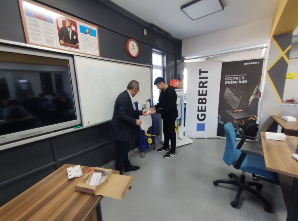 Duvar önünde olduğu kadar duvar arkasında da üstün teknolojiye sahip çözümlerle yaşam alanlarına değer katan Geberit, uzun yıllara dayanan bilgi birikimini “Meslek Liseleri Eğitim Programı” ile öğrencilere aktarıyor. Sıhhi tesisat sektörünün ihtiyaç duyduğu nitelikli insan kaynağını ve genç neslin mesleki gelişimini bu eğitim programı ile destekleyen marka, eğitim müfredatını da pekiştirmiş oluyor.