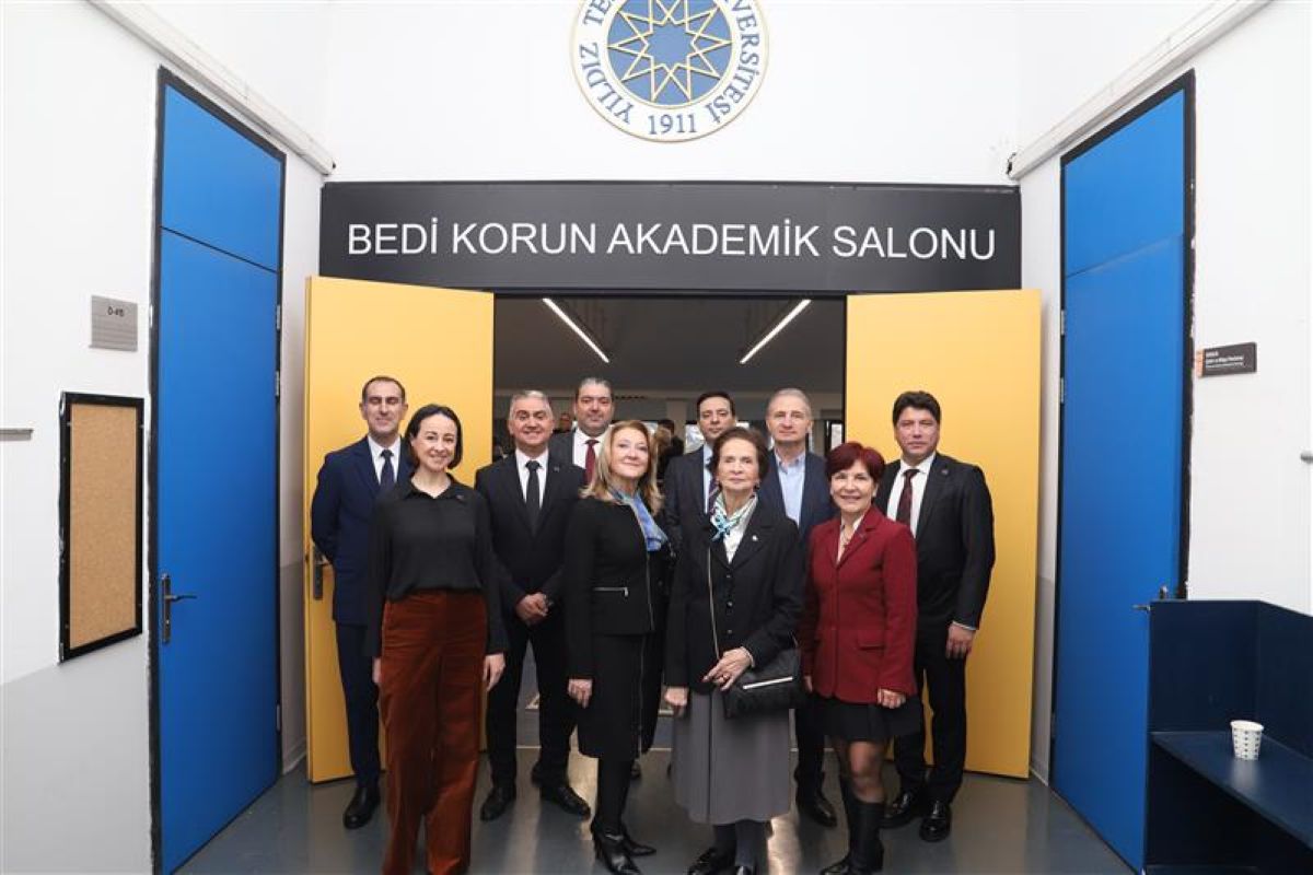 Mimarlık Fakültesi’nde gerçekleştirilen Bedi Korun Akademik Salonu açılış törenine ise Korun Ailesi, grup şirketlerinin genel müdürleri ve akademisyenler katıldı. Törende, Yıldız Teknik Üniversitesi Rektör Yardımcısı Prof. Dr. Hüseyin Yılmaz tarafından Figen Korun ve Tunç Korun’a plaket verildi. Fakülte Dekanı Prof. Dr. Sırma Turgut ise Korun ailesine katkılarından dolayı teşekkürlerini sunan bir konuşma yaptı.